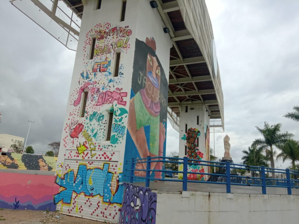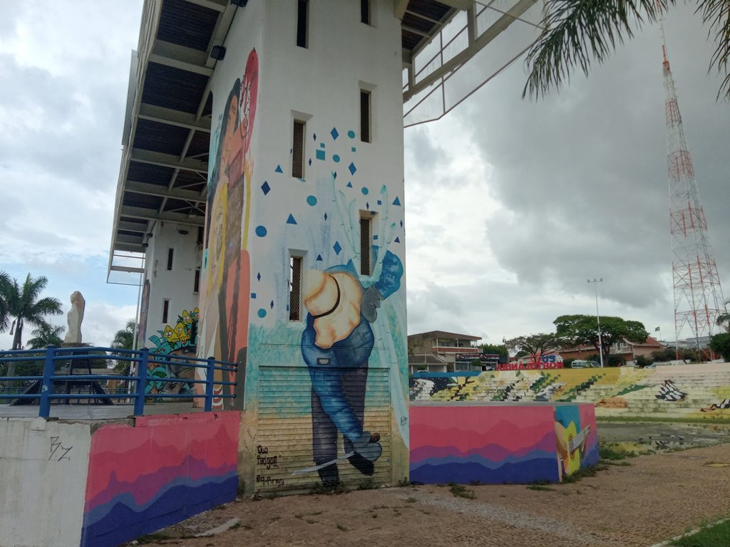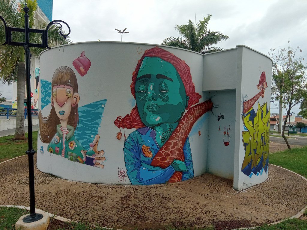 A intervenção foi realizada pelo projeto “Arte Por Toda Parte”, coordenado pela artista Bromou (Bruna de Freitas Moreira), com a participação das grafiteiras convidadas Camilita (Camila Aquino), Dora Voadora (Isadora Nascimento), Noemia Cavallini, Paula Luzia, Chris Quaglio, entre outras. Nesta semana, as artistas iniciaram a pintura das arquibancadas e escadarias da praça. A intervenção fará um novo desenho no local com efeito 3D. A previsão é que o trabalho seja concluído na próxima semana. Bromou já havia realizado uma intervenção artística de grafite com efeito 3D na praça durante a 4ª edição do Jacuba Festival de Graffiti, realizada ano passado.