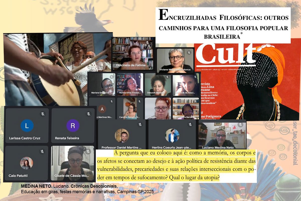 Entre giras travessias e deslocamentos, os saberes e experiências ativados nos encontros regulares no programa de pós graduação da faculdade de educação da Unicamp tem sido afortunado de partilhas e conhecimentos. Sob a orientação e provocação da capoeirista e professora Norma Trindade de Lima, a proposta acadêmica ultrapassa a institucionalidade e risca os cruzos a partir de leituras que se alia à pluralidade e patrimônios imateriais dos participantes. O que no limite nos permite afirmar se tratar de uma atitude coletiva da decolonialidade, que vem de fora e ao encontro da academia. Esse ritmo de sincope é tocado no gunga, berimbau mestre que dá ritmo ao jogo e ao movimento. Essa didática é aplicada pela professora Norma já um bom tempo na Faculdade de Educação da Unicamp, na graduação e na pós-graduação, e se integra sim, a uma outra ação, a da utopia em movimento. Sua proposta de ensino sai das salas e corredores da universidade, e se integra aos mais diferentes terrenos e terreiros da comunidade.
