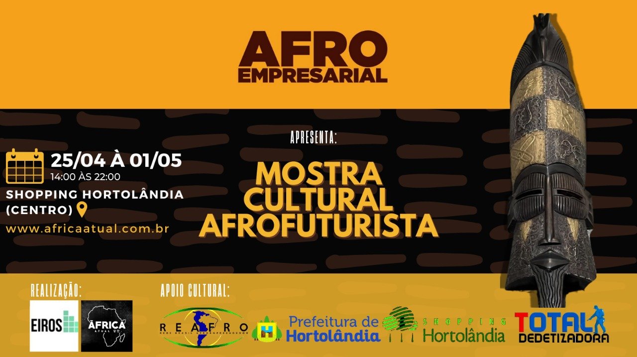 O evento será realizado no espaço Afro Empresarial localizado no Shopping Hortolândia no centro da cidade entre os dias 25 de abril a 1º de maio sempre das 14:00hrs até 22:00 hrs. A curadoria da Mostra é do professor Odair Marques da Silva, autor do Atlas GeoCultural da África, e uma realização da Editora Eiros do Brasil com apoio cultural da REAFRO, Rede Brasil Afroempreendedor, da Prefeitura Municipal de Hortolândia, Secretaria Municipal de Desenvolvimento Econômico e do Shopping Hortolândia